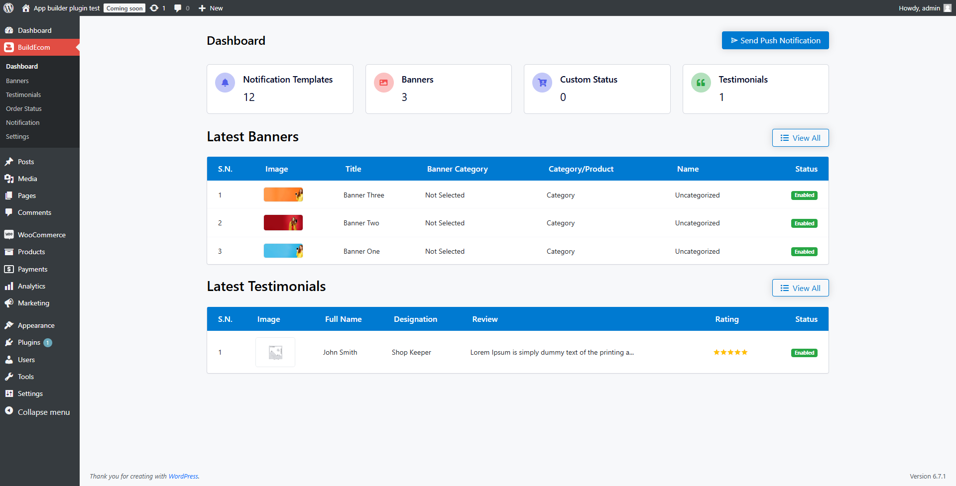 1. Have a nice dashboard for your app's banners, testimonials, and notification templates overview.