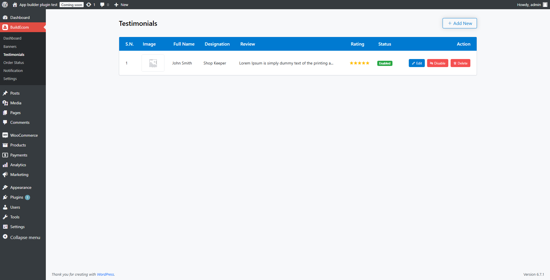 3. Manage testimonials for your app.