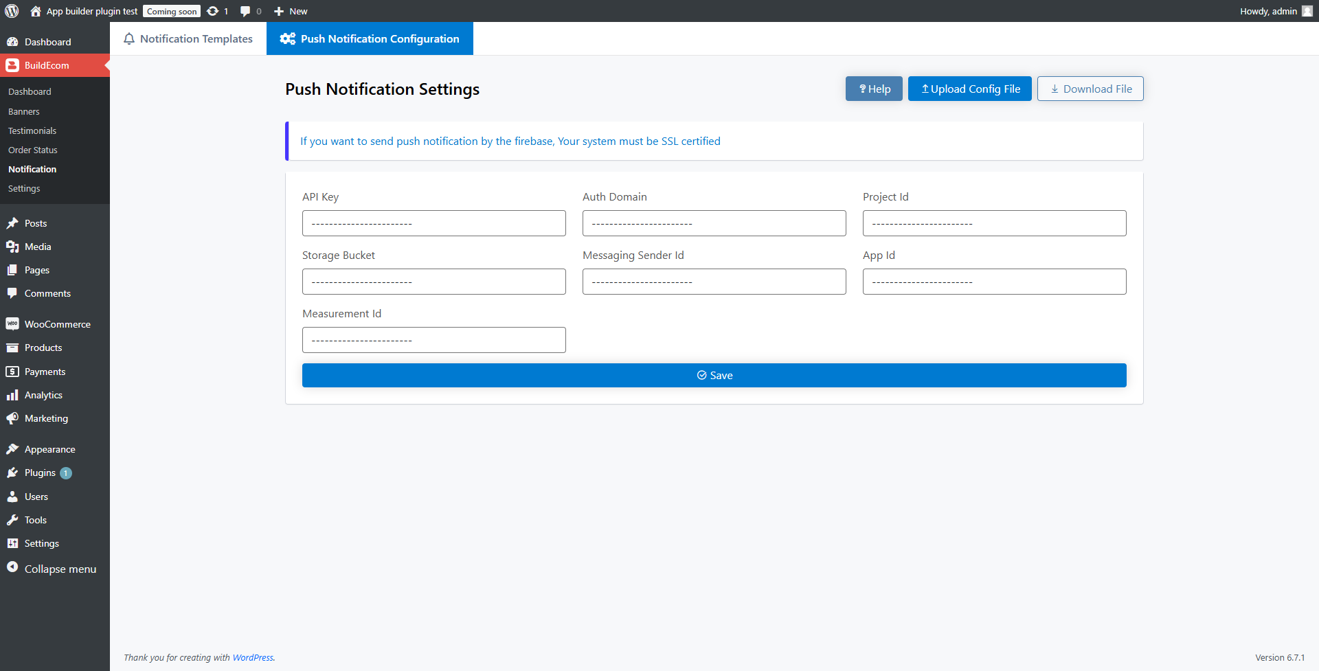 6. Configure push notifications.