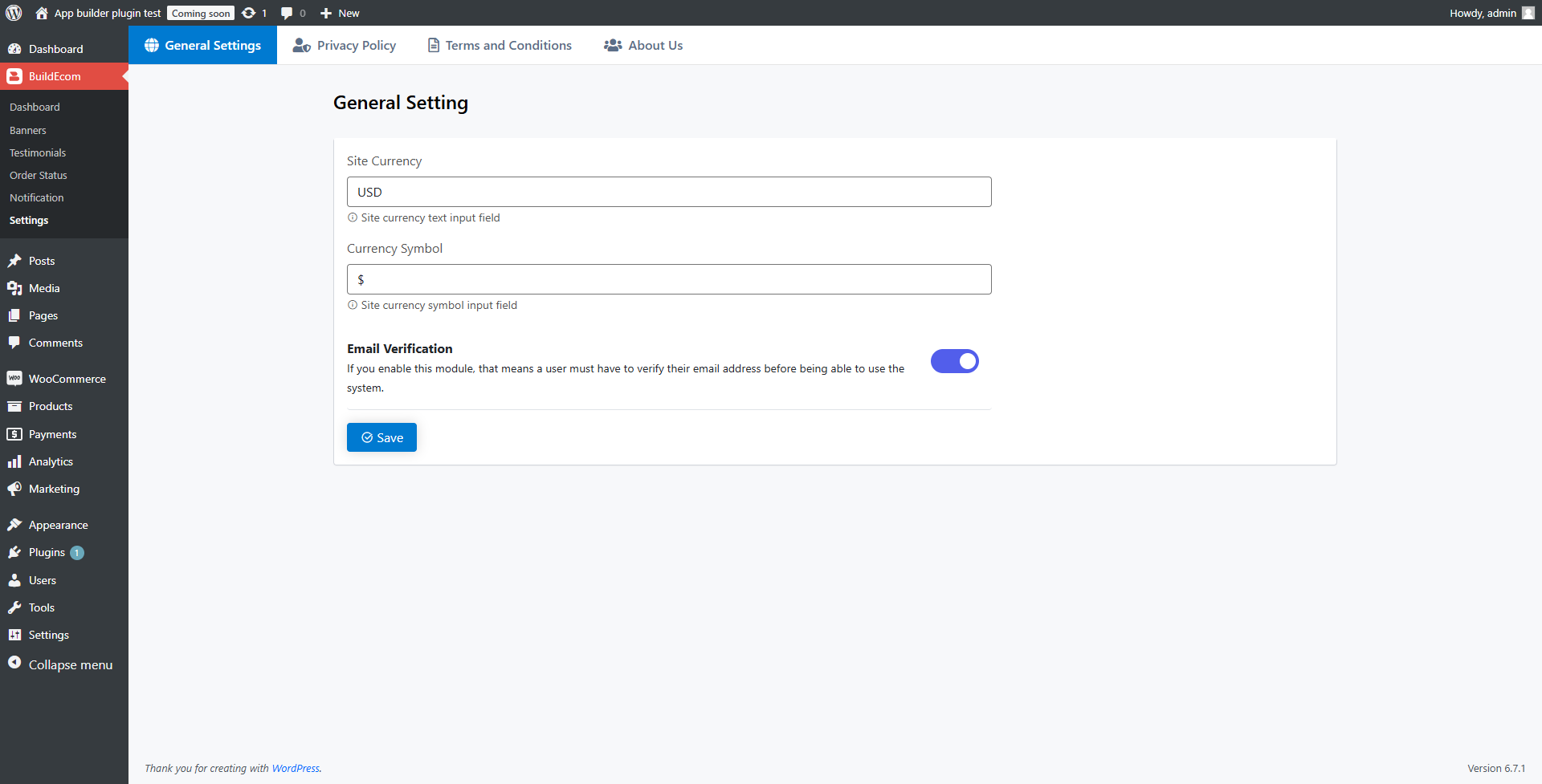 7. Manage settings and different pages like Privacy, Terms & Conditions, and much more.